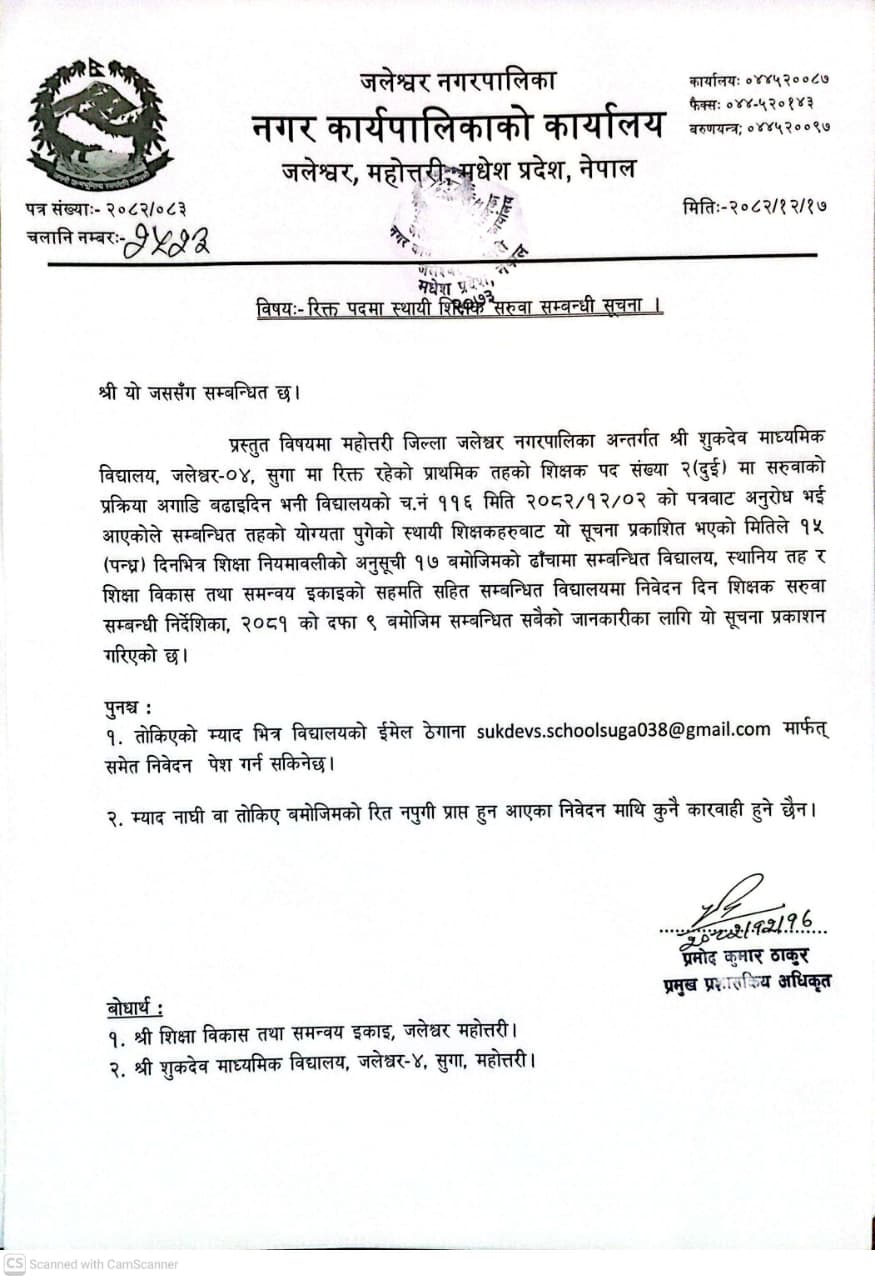 रिक्त पदमा स्थायी शिक्षक सरुवा सम्बन्धि सूचना ।