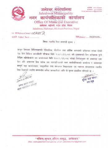 विद्यालय (धार्मिक तथा संस्थागत) तत्काल बन्द गर्ने सम्बन्धमा ।