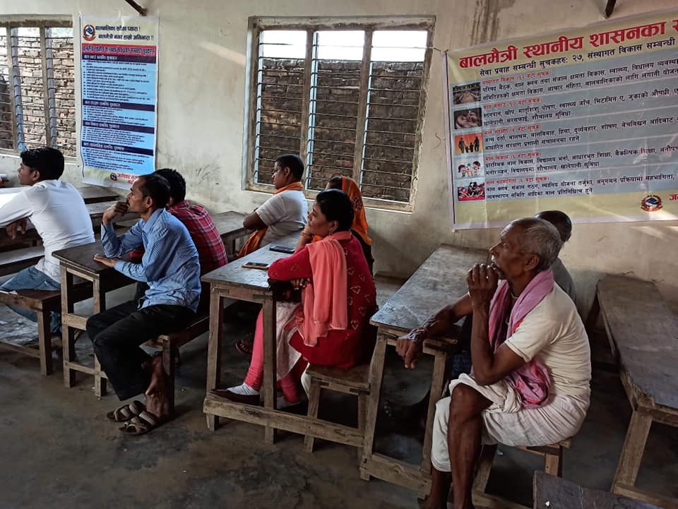 आज मिति २०७६/११/२० गते जलेश्वर नगरपालिकाको वडा नं. १२ मा बालमैत्री स्थानीय शासन युक्त वडा घोषणाका लागि स्वास्थ्य स्वयंसेविकाहरू तथा स्वास्थ्य सेवा संग सम्बन्धित सरोकारवालाहरुलाई बालमैत्री कार्यक्रम सम्बन्धी चेतनामूलक गोष्ठी