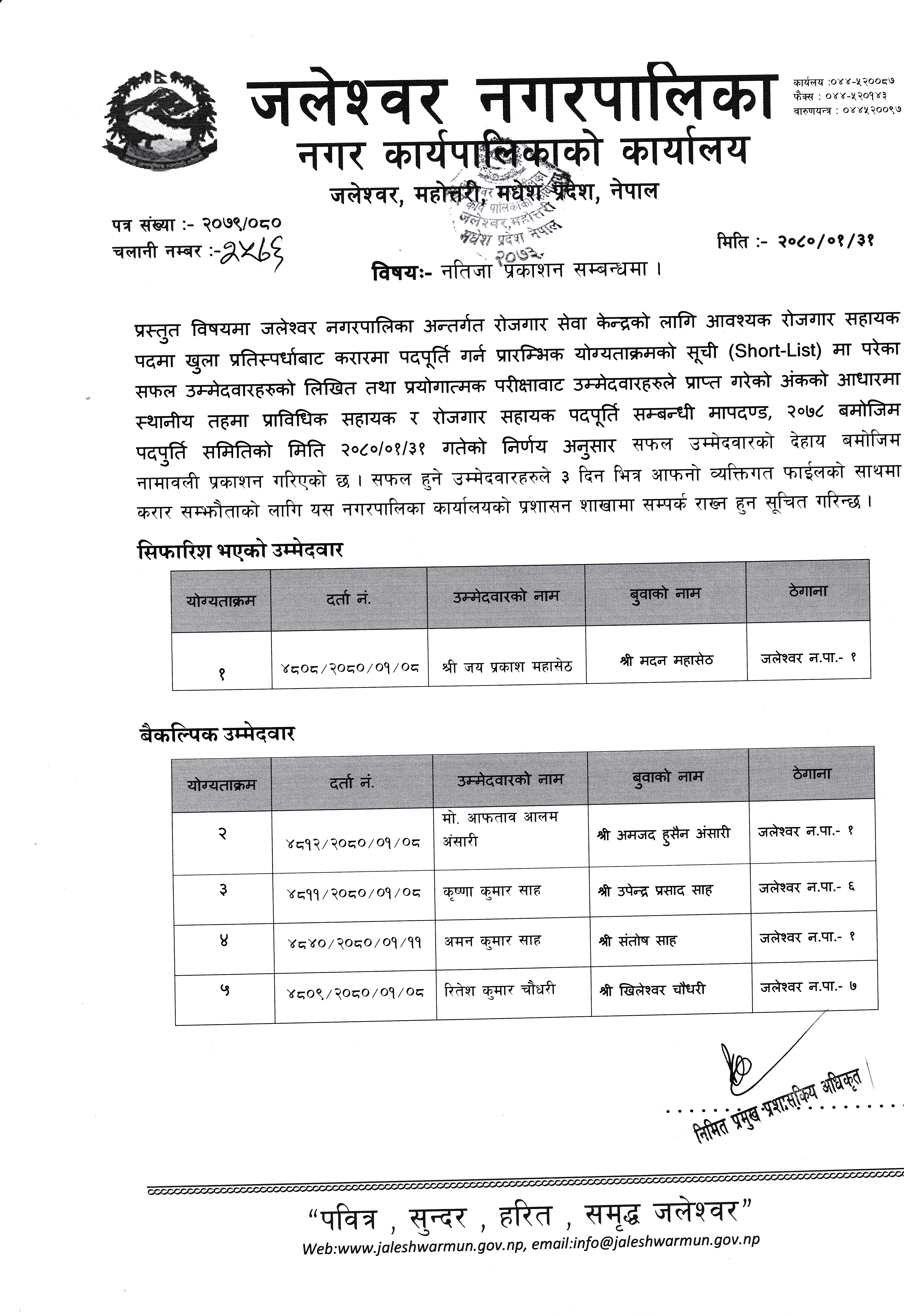 नतिजा प्रकाशन सम्बन्धमा |