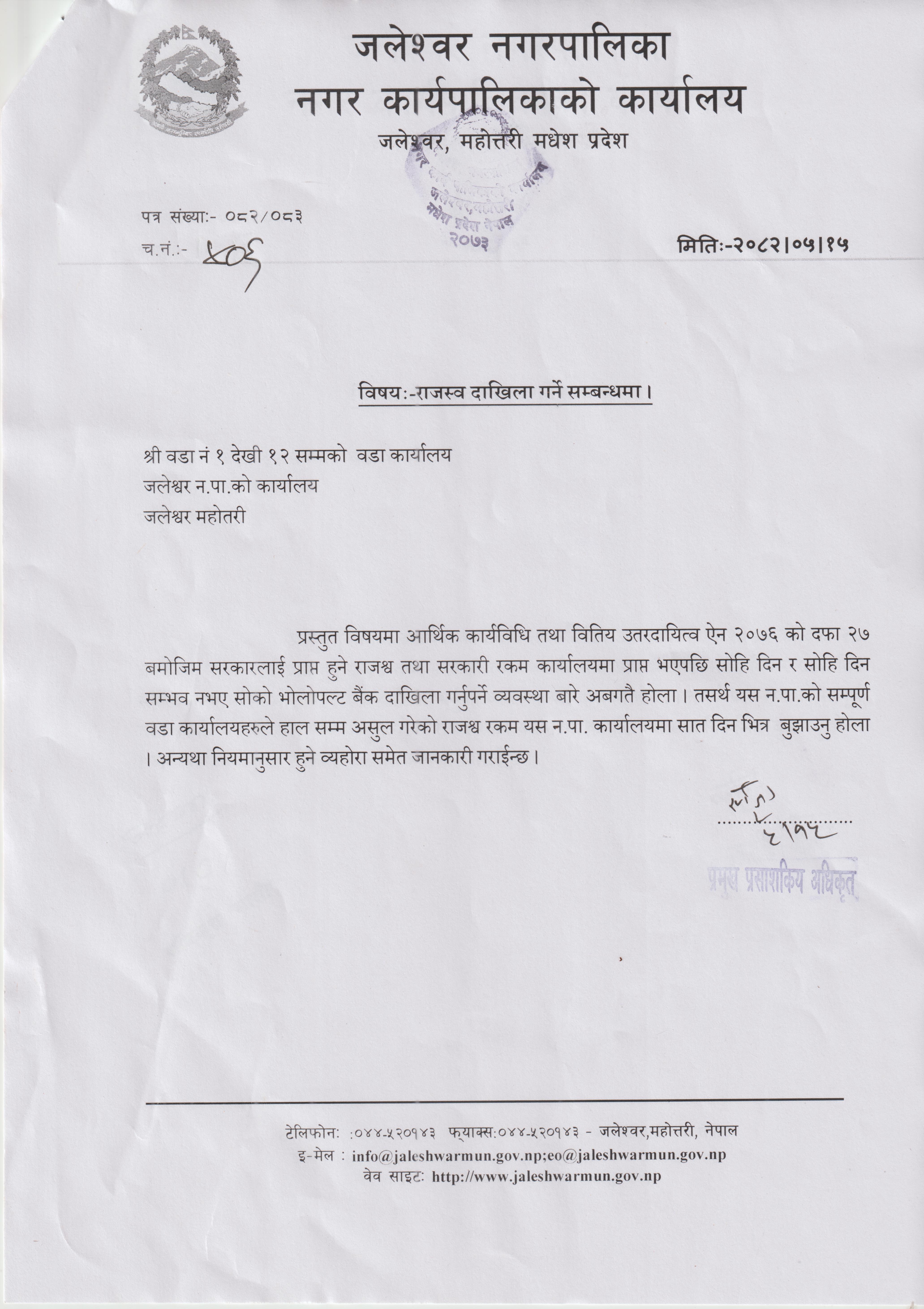 राजस्व दाखिला गर्ने सम्बन्धमा