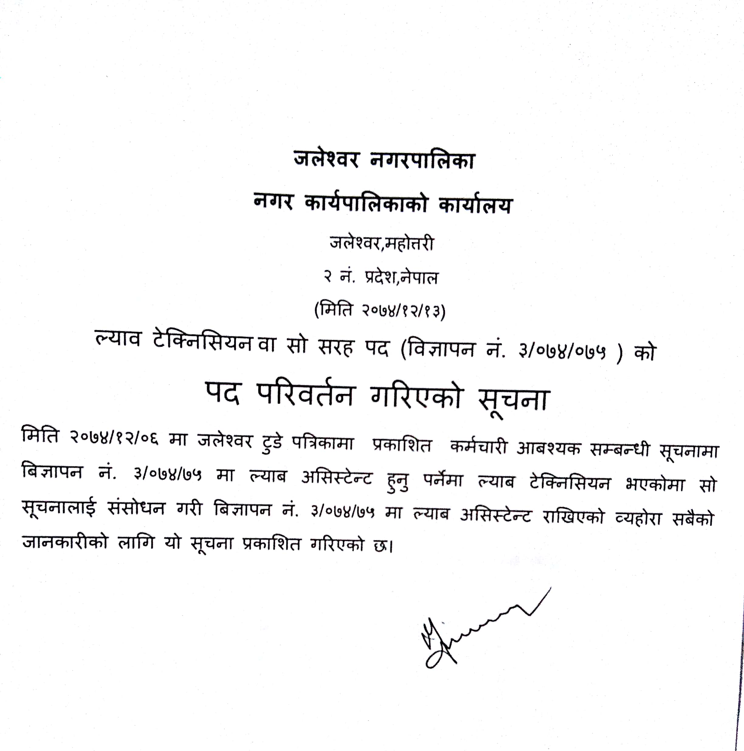 सेवा करारमा कर्मचारी आबश्यकता सम्बन्धी सुचना ।