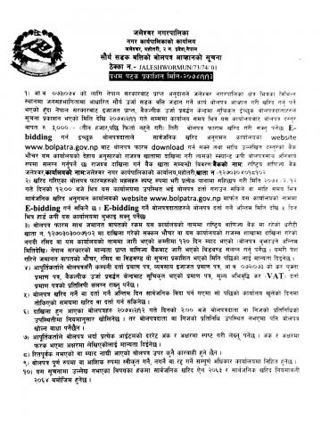 सौर्य सडक बत्तिको बोलपत्र आव्हको सूचना