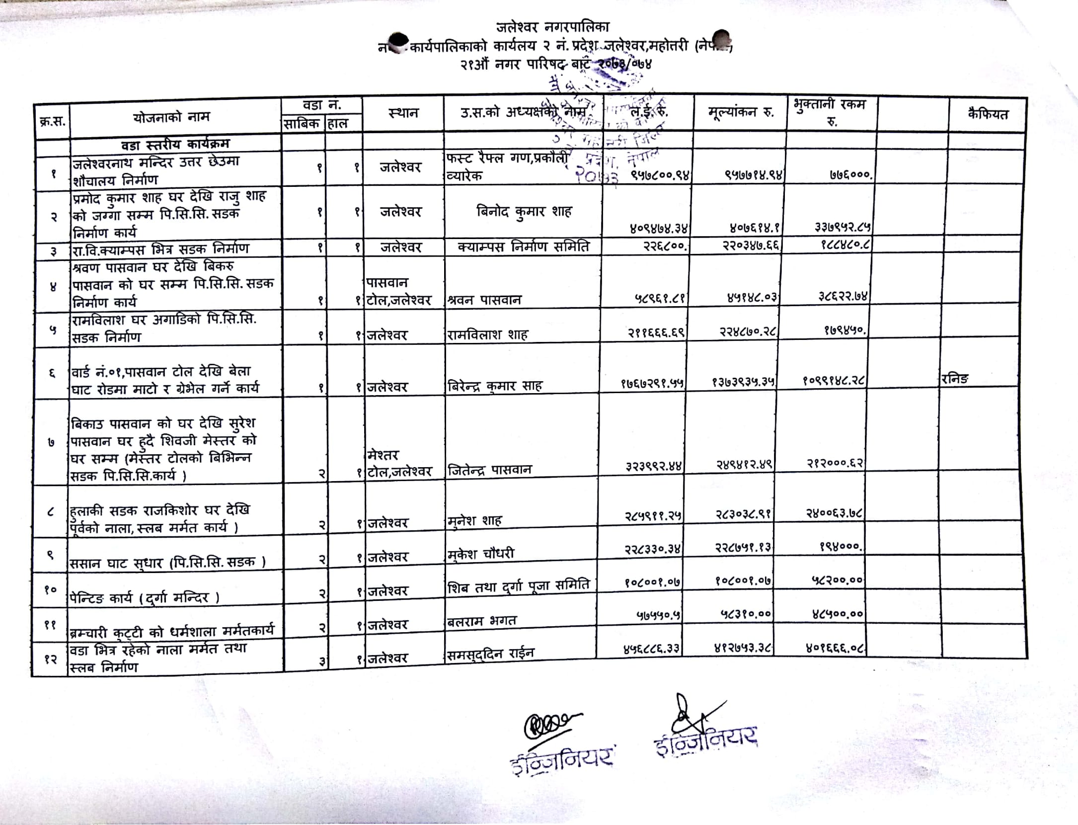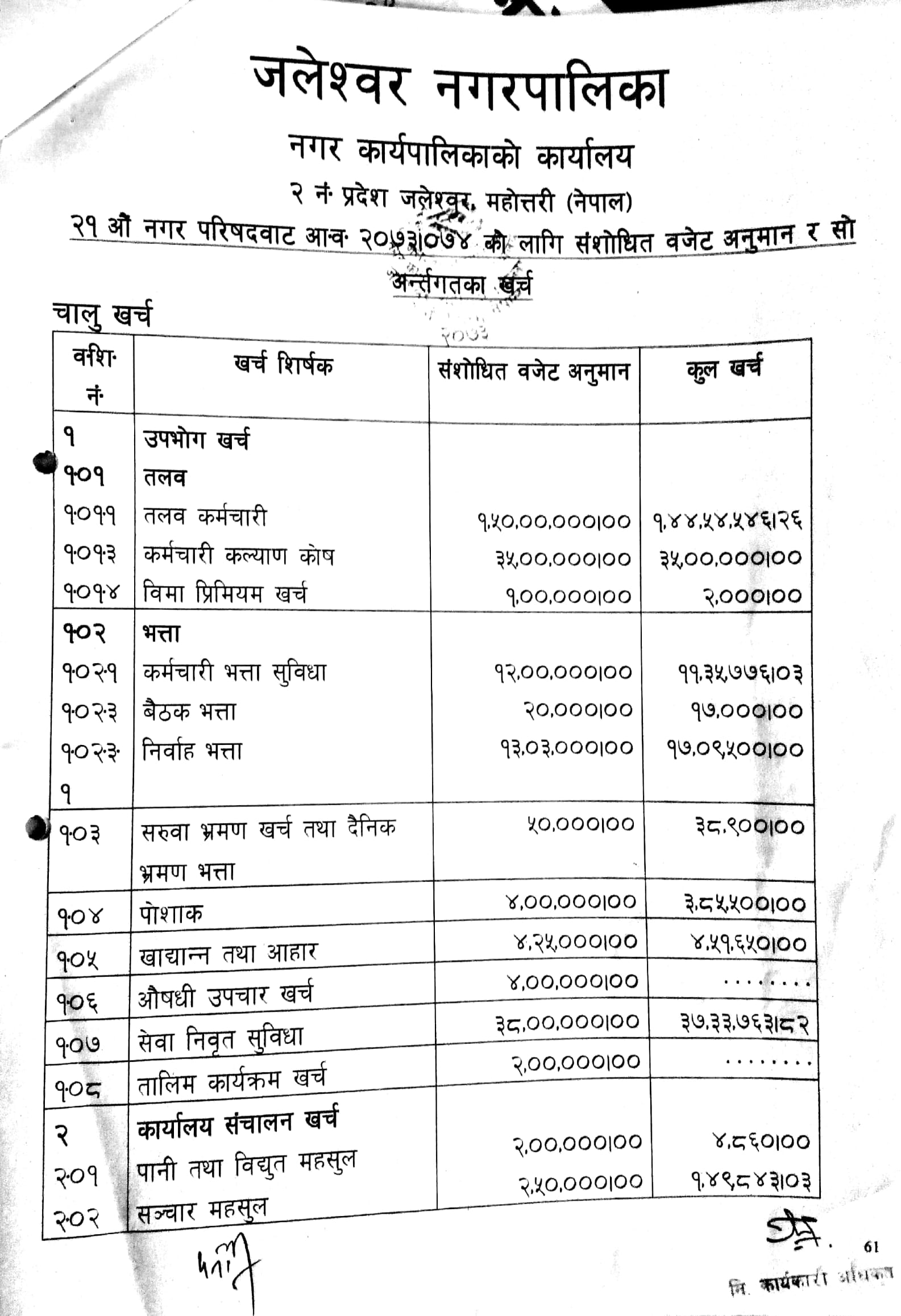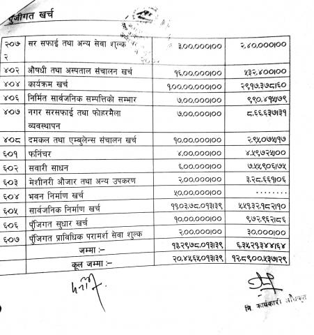 २१औं नगर परिषद बाट आ.ब.२०७३/०७४ को लागि पूजीगत तथा चालु अन्तर्गत का खर्च