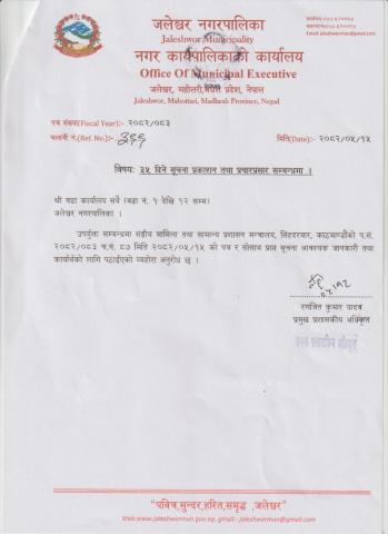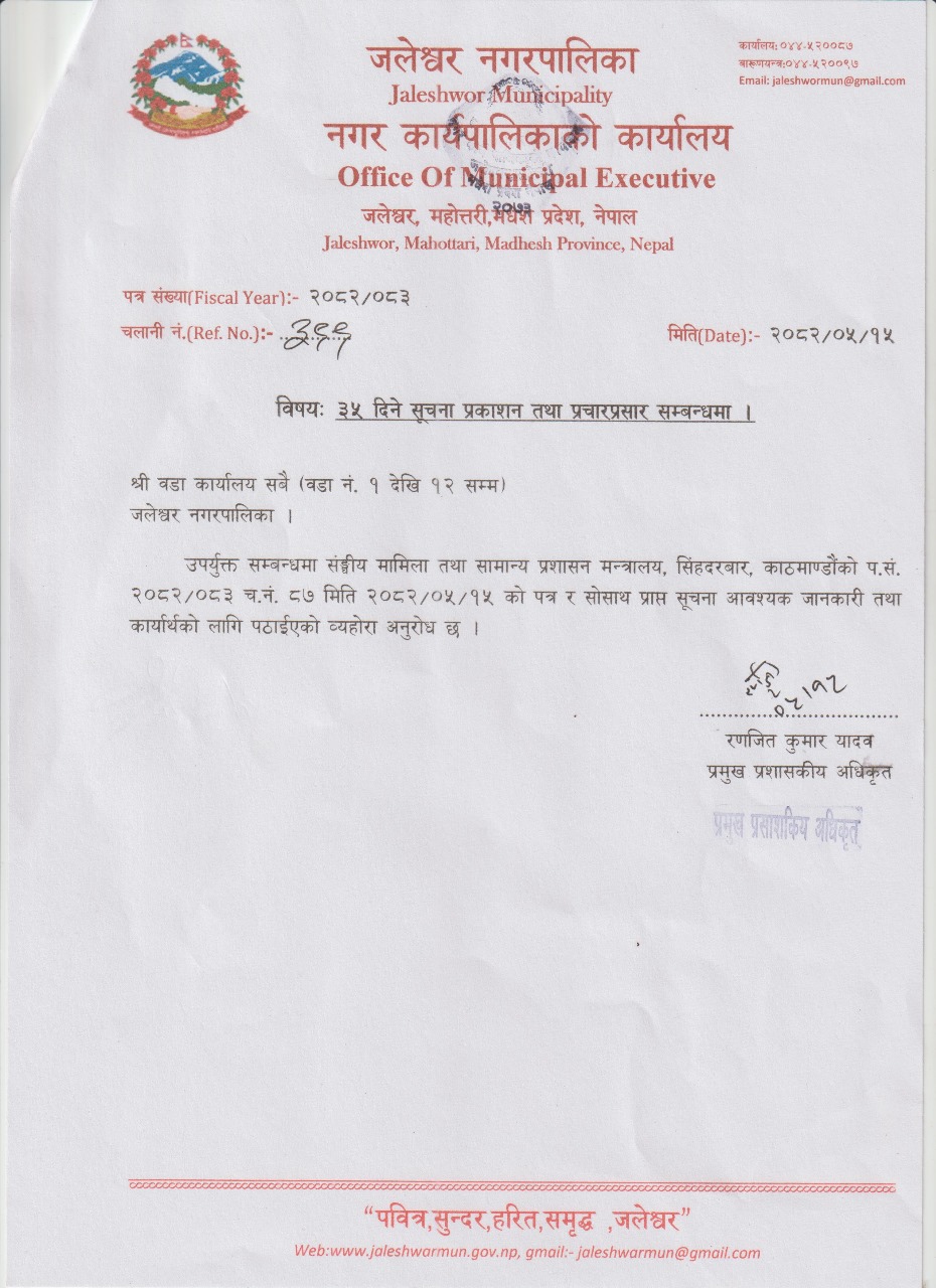 » ३५ दिने सूचना प्रकाशन तथा प्रचारप्रसार सम्बन्धमा ।