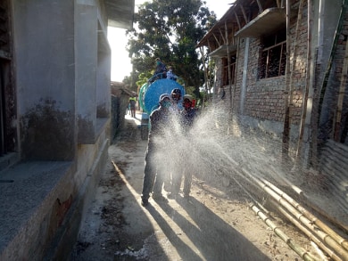 जलेश्वर नगरपालिकामा किटनाशक औषधि छर्किंदै |