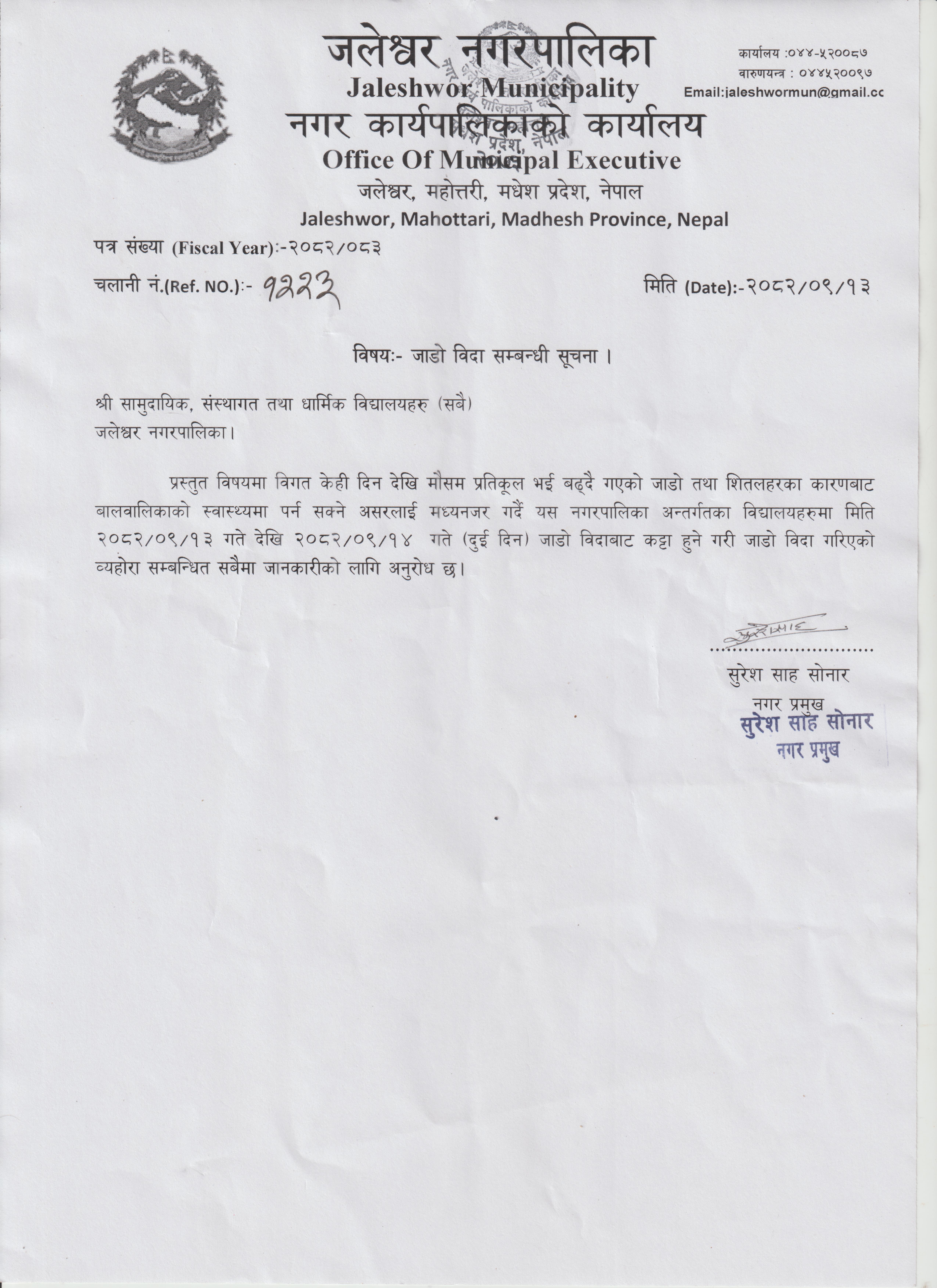 » जाडो विदा सम्बन्धी सूचना