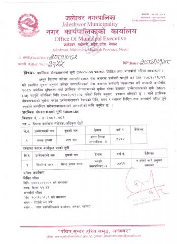 » प्रारम्भिक योग्यताक्रमको सूची (Short-List) 'प्रकाशन, लिखित तथा अन्तर्वार्ता परीक्षा सम्बन्धमा