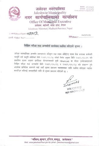 प्रारम्भिक योग्यताऋमको सूची (Shot-List) प्रकाशन, लिखित तथा अन्तर्वार्ता परीक्षा सम्बन्धमा।