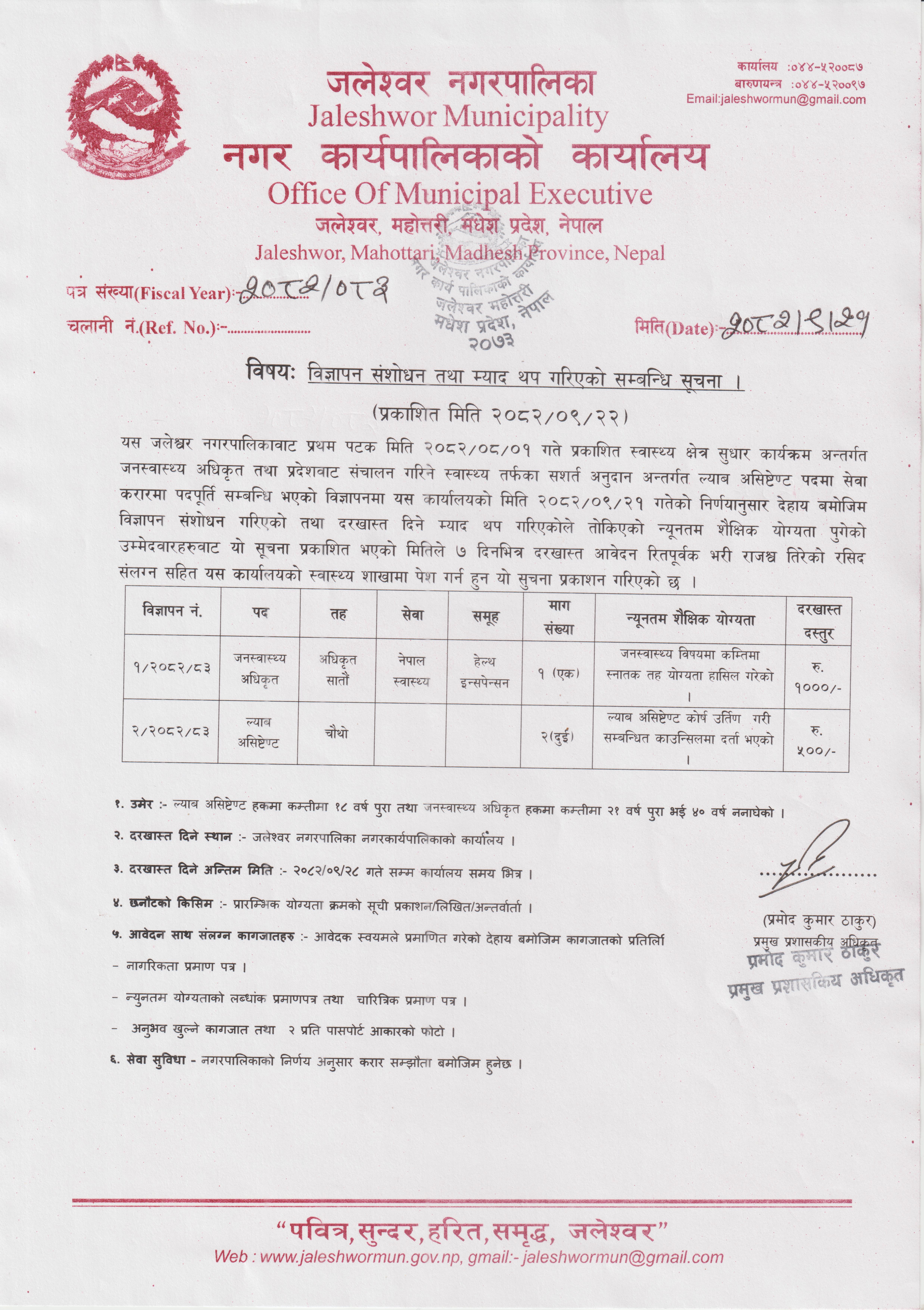 » विज्ञापन संशोधन तथा म्याद थप गरिएको सम्बन्धि सूचना
