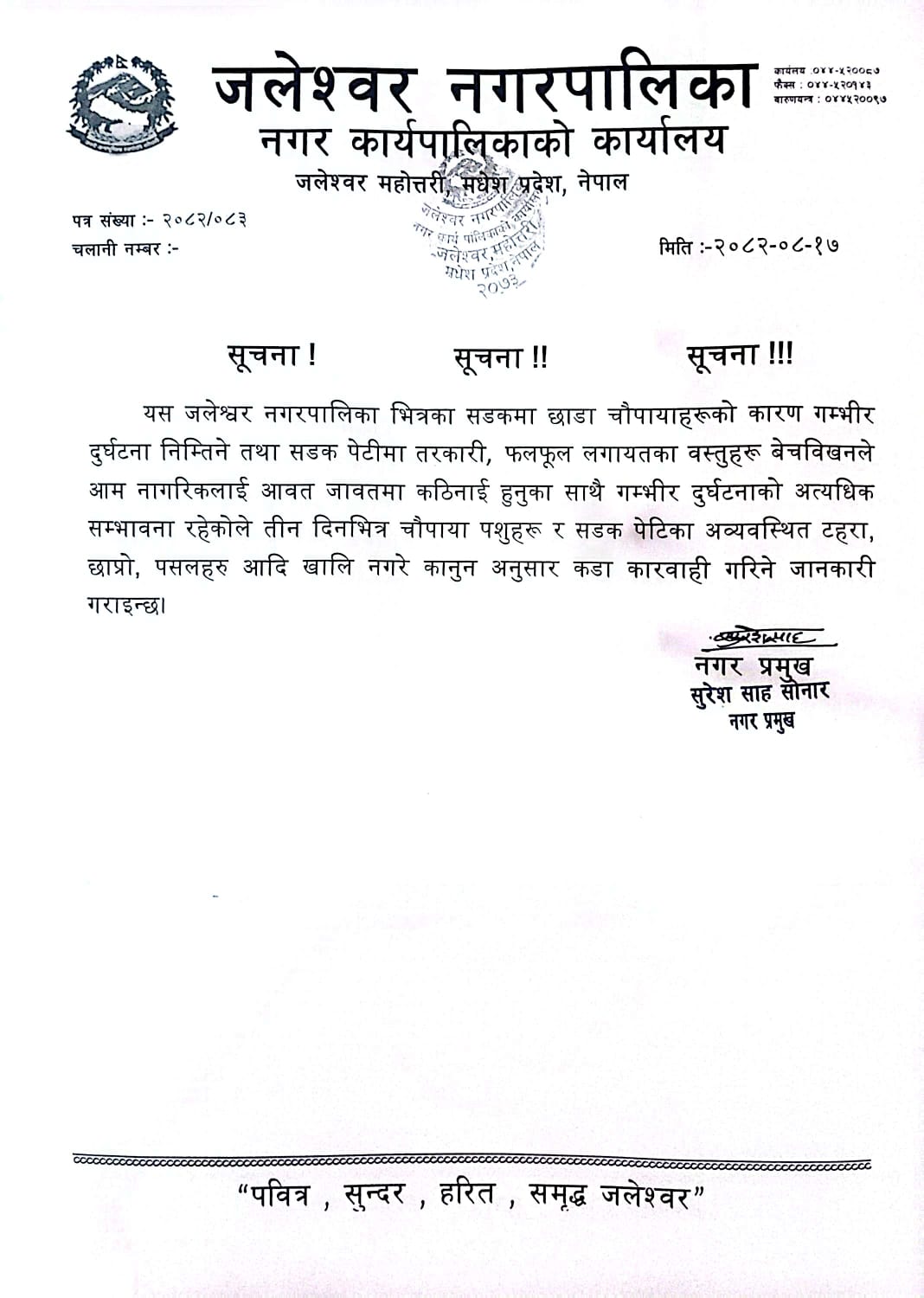वडा नं.-१० स्थितको श्री अभिनन्दन आ.वि, सारी नजिकको सार्वंजनिक पोखरीको सुचना स्थगित भएको सम्बन्धमा